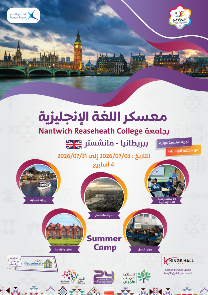 أشهر برنامج في الرحلات التربوية وتعليم اللغة الإنجليزية وتطوير المهارات القيادية منذ عام 2002م احجز الأن عن البرنامج برنامج المدرسة الصيفية فرصة ذهبية لتطوير مهارات الطلاب في اللغة الإنجليزية والاستفادة من الخبرات المتبادلة على مستوى العالم . مميزات البرنامج شركاء النجاح